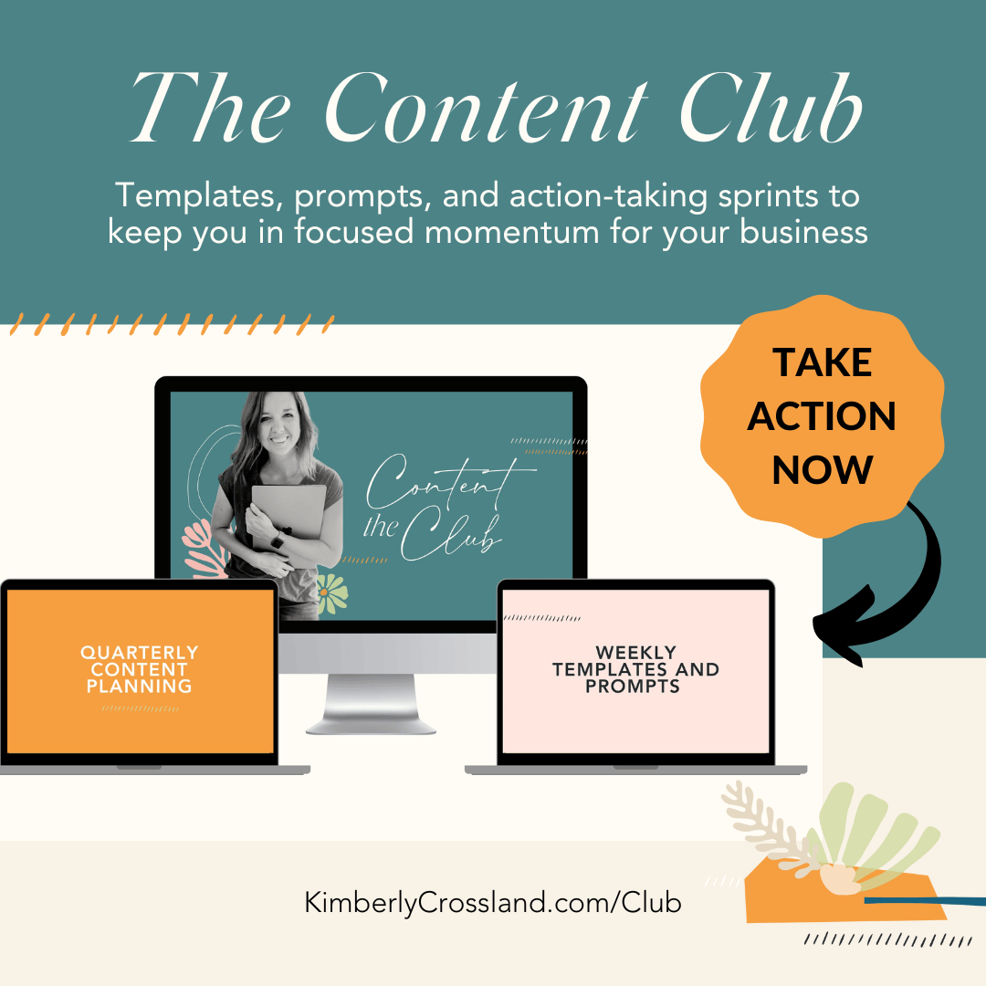 Inside the Content Club, you’ll get the templates to share your ideas with your audience and set yourself up for Black Friday success now instead of the Wednesday before Turkey Day. Plus, you’ll get sprints to keep you taking brave action and my eyes on any content you’re unsure about so you can send more confidently.